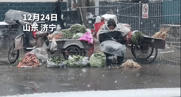 脚边,是白叟摆的小摊,小油菜孤零零地陈列正在边,期待着买从挑拣的过程中,逐步被大雪笼盖。