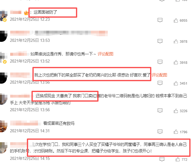 还有网友暗示,本人曾见过“往上砍价”的顾客——爷爷卖柴火,10元一担,买家却感觉太廉价,自动加到13元,还随手帮爷爷了被压坏的车子。